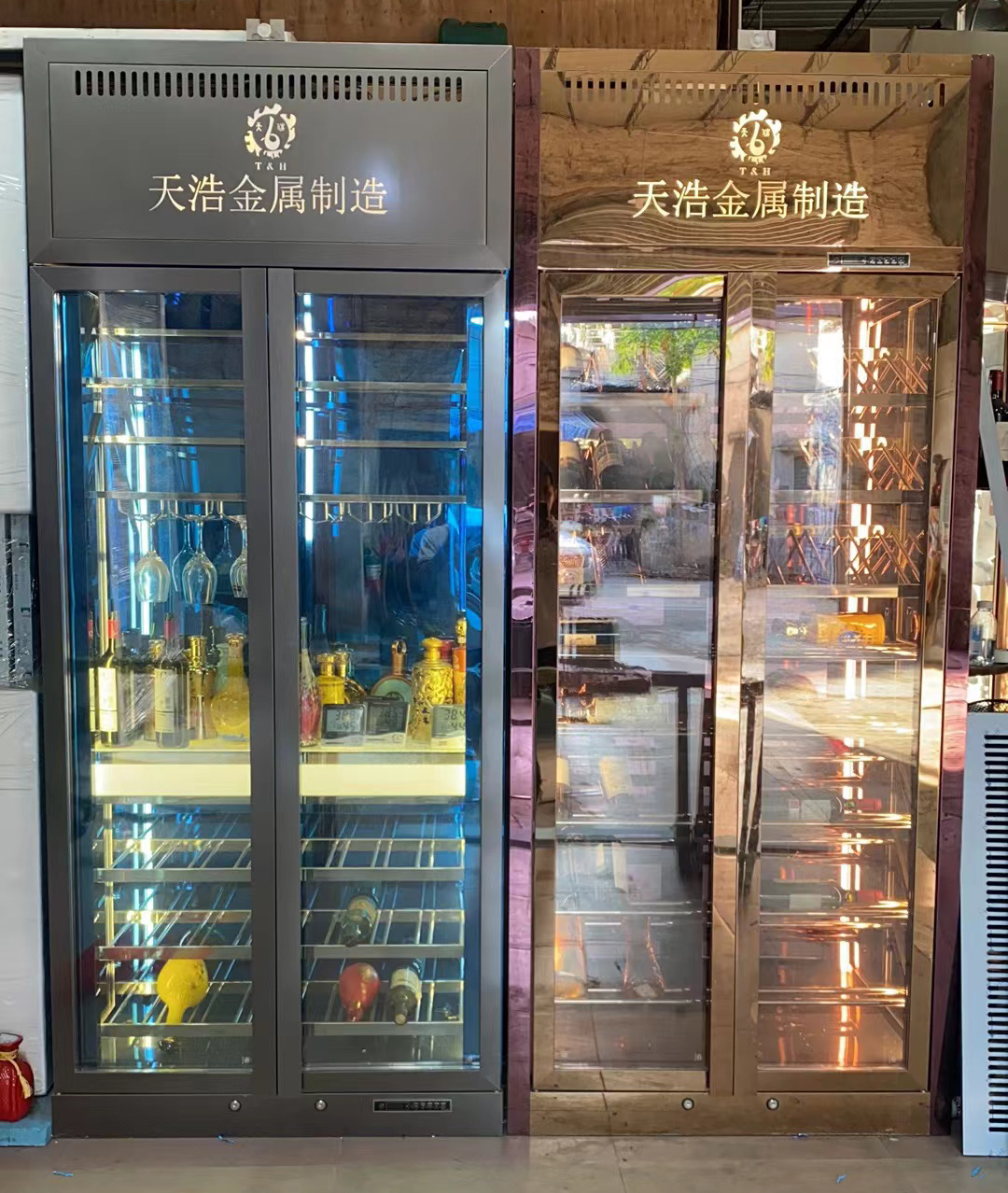 天浩金屬有展廳、別墅酒柜樣板房及各類恒溫酒柜、常溫酒柜、不銹鋼酒柜、酒架展示中心,可為全國各地客戶提供周到的服務(wù)。